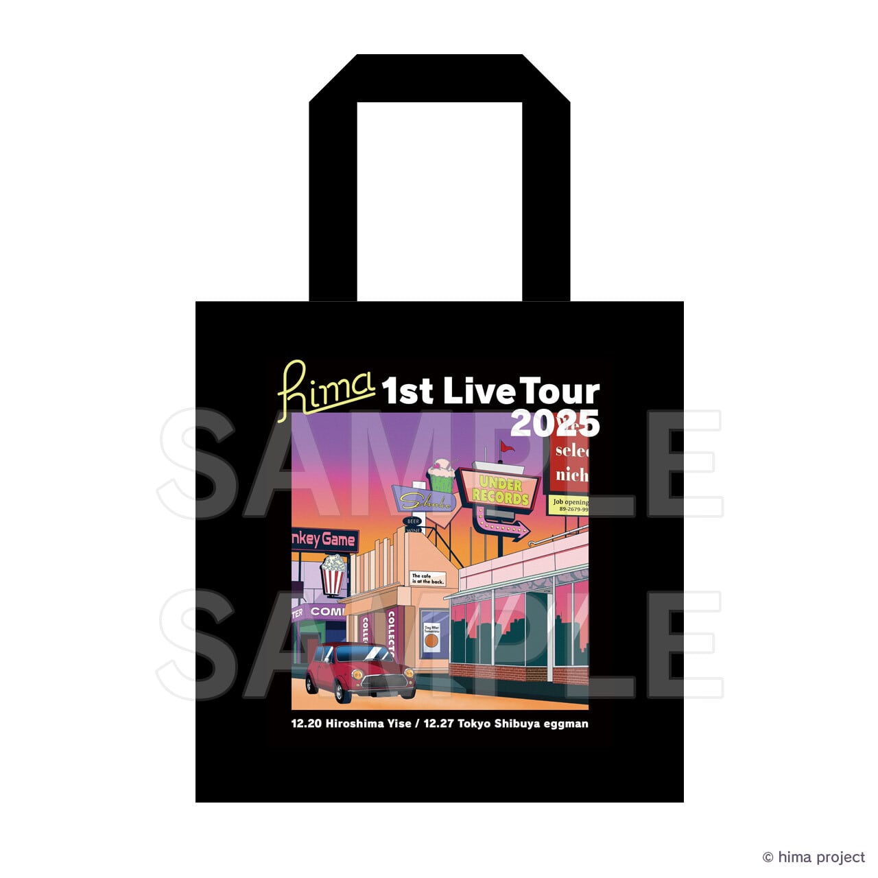 2025年12月開催のライブツアー『hima 1st Live Tour 2025』広島公演・東京公演で会場販売されたトートバッグです。